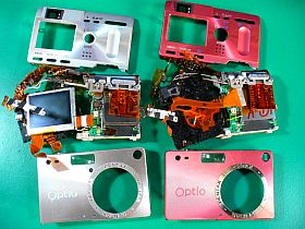先回のOptioS4の修復は上手く行かなかったのですが、今回のOptioS(総費用\418)も失敗!(左写真<クリック>)
