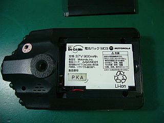 一応、ネットで探して注文してみることにしたが、取り敢えず、ジャンク・バッテリでサイズが合いそうなものを買って来た。(DoCoMo電池パックMO3 3.7V,900mAh \100税込み)