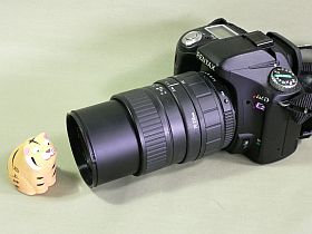 そこで、軽量化も考えてすこし短めのズームレンズ(SIGMA ZOOM 70-210mm)ではどうかと、新たに買ってみました。(左上写真、総費用\2,525)