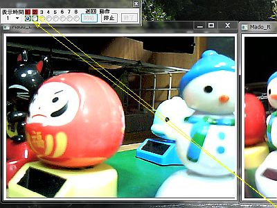 1台以上8台まで接続してあるカメラ群の内、指定した2台(茶褐色で指定)を連続的に「同時表示」させるルーチンを作った。(図4<クリック>
