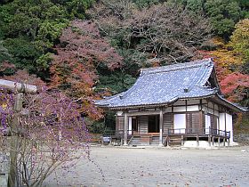 下の民家の屋根が、左右(!)流れになっているのに、お寺の屋根は手前・奥の方向です。