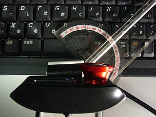 ところで、この「百均魚眼レンズ」の視野角は、一体どれぐらいかを、分度器を使って調べてみた。(図7)