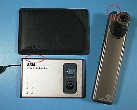 左の写真の左側がeyeplateとソフト・ケース、右側がスティック・ショット。