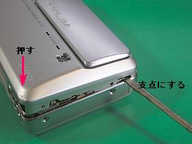 また、基板を抜き出す時、下側のクレードル接続端子が引っ掛かって抜け難いので、ここを押し出すようにして抜き出します。(左上写真<クリック>で)