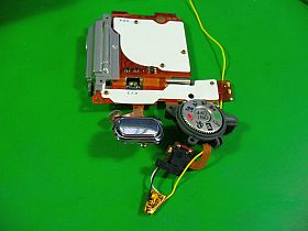 ビス3個を外し(左写真下部の)センサ押え金具1個を外してフレキを緩めておいて、“CCD保持部”をそっと回転しさせながら無理矢理?抜き出しました。(ふうーっ、外せた!)