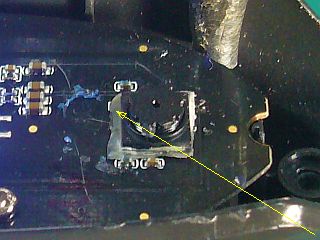 その「レンズ部」は、留めピンが2本出ていて、これが基板の孔に刺さっているわけだ。(図3)