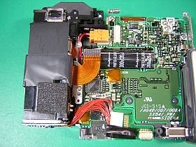 それで、電源を入れて調べる間、(憎っくき)フラッシュ駆動部は、外しておきました。(左写真を<クリック>)