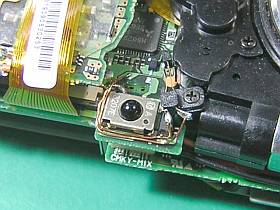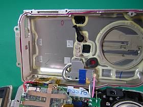 左/上写真<クリック>で、その超小型スイッチの場所と上に被せてあったのを剥した蓋。
