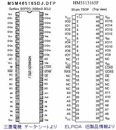 何気なく、ELPIDA(日立と日電とが共同で設立したメモリの会社だとか)の旧DRAM情報(リンク切れ)を見ていて、64Mbits以外に128MbitsのEDO-DRAMも、存在している/いたらしい事を知った。(HM5113165等で、もう保守品種らしい)