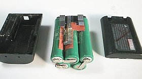 中の単4型1.2V Ni-MH(650mAh)5本を、買って来たもの(700mAh)と入れ替えて、それぞれを半田付けで結合。