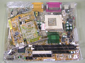 以前、うっかり買ってしまったDI式の小型VGAモニタが、ずっと気になっていて、何とかしたいと思っている事もあって、参考用として、DIボード付きのジャンク・ボード(MS-6137)を買ってみた。(\480税込)
