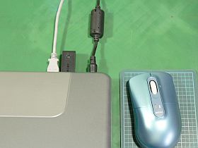 あるいは、邪道?だが、“USB受信機”を“USB延長ケーブル”を使って適当な位置まで近付けると、操作はOK。(例:左写真)