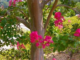 (保育園訪問後の)帰宅途中、時間が余ったので、EX-Z600を片手に、この酷暑の中、汗を拭き々々花を探して公園をあちこちと!咲いていたのは、“さるすべり”と“むくげ”?ばかり。