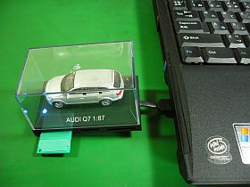 これは、「ミニ」や「アウディ」のスケール・モデルが上に乗っかったもので、随分以前から店頭に並んでいて、愉しく眺めていたのですが、カードリーダ・ライタは、シングルのやマルチのが幾つも有るのに、こんなのを買ってどうするんだよ!と、毎回自分を戒めていたのですが。(尚、「ミニ」の方は、USB-HUB)