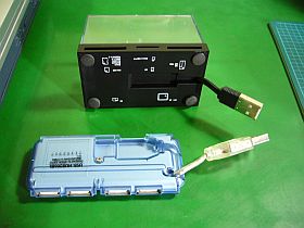 先日、とうとう誘惑に負けて、おもちゃ風USBリーダ・ライタを買ってしまいました。orz (左写真&<クリック>、\300税込)