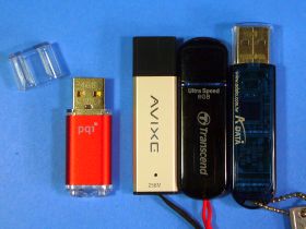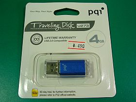 以前、Puppy Linuxの立ち上げ用に買った4GB-USBメモリ[赤](下記[1127]項)のコンパクトさが気に入ったので、追加で[青]を買って来ました。(左写真 \490税込み)