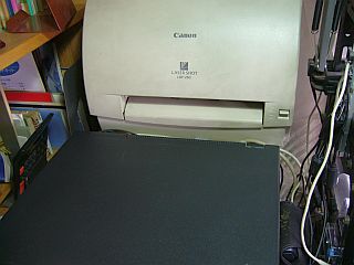 他方、このプリンタ(LBP-250)には、“単体”の「プリント・サーバ」が使えず、LANで使用する際は、一々“ノートPC(現用ThinkPad A21e)”の「インテリ・サーバ」を起動させなければならない煩わしさがあります。(一方では、昔、大枚七千円を叩いて買った「単体プリント・サーバ」がずーっと不遇を託っています。左上写真<クリック>)