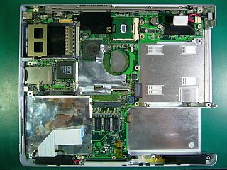指で触ってみると、CPUやATIチップセットなどは熱を持っていて、電流は食っているようだ。(左/上写真<プッシュ>