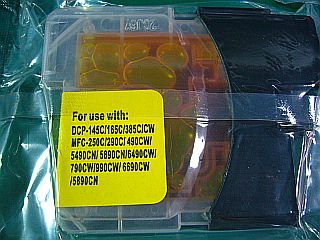 そこで慌てず、買い溜めしてあるLC11タイプ(?)のインク・カートリッジを入れ換えようとしたら、何と!カートリッジが“カチッ”と止まらず、直ぐに跳ね返ってくるではないか!あー、こりゃダメダ!(8個−4色2組\720送料込み)