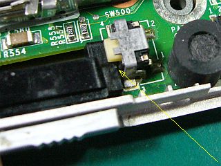 ...電源SWを押すレバーがタクトSWの頭の下に潜り込んでいてちゃんと押せていなかったことが判明。(図1)