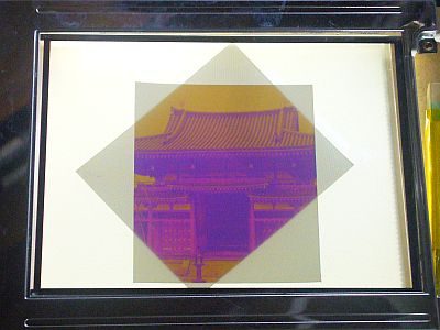 ![図1:45(=180-135)度傾けてセットする偏光板 [クリック]→図2:切り揃えた偏光板群(PC110には不充分なもの)](fig/msk1005a.jpg)