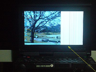 一応、「PC-DOS」でも、「Win95」でも表示が出るようにはなったが、"WVGA-TFT"では、なぜか、その表示が変だ。横幅が狭いので、全体が四角形に見える。(図3)
