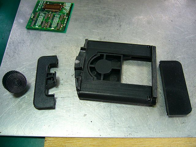 幅を小基板サイズに縮める為に、切り取った横板の片方を、(加工した後)寝かせて貼り付けた。(図1の矢印)