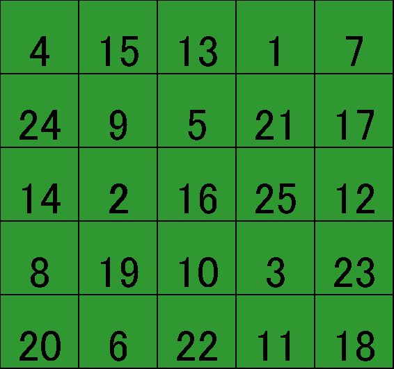 速読の方は、じっくり自習しようと思っているが、5x5マス内の1〜25の“数字読み取り練習表”は、無理に次々パターンを変えなくても良いそうだ。(眼から鱗!自分で作ってみた1、2、3)