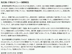単なる後追いニュースではなくて、新しい試みの発掘だとか、効果的な育成方法の紹介だとか、実験的手法の協賛など、「創造的で生産的な活動」でニュースを生成して行けば、もっと読者も増やせるのではないかと思うのですが、如何?(「ヨコミネ式」の小中学校でのフォローなど、格好のテーマだと思うのですがねぇ)