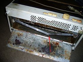 超長年使って来て、まだパリパリ現役のオーブン・トースタSHARPKZ-30E1)、それの下側石英管が、掃除の際に折れてしまいました。(左写真)