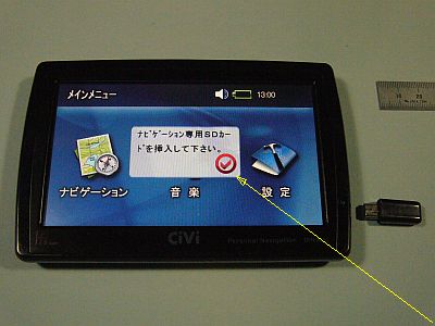 表示全体が波打つし、電源を入れ直してみると、“ナビ用SDカードが入っていない!”と警告が出る。(図1)