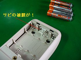 で、天眼鏡?でじっくり電池ホルダの接点を調べてみたら、一箇所、接点の奥側にサビが見えた。(メッキがまだ全体的に綺麗なだけに、これは見落とし易い!)