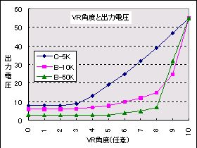 これにはC型(Cカーブとも云う)VRを使えばよい事は分かっているのですが、世の中に標準で出回っているのは、殆どがB型かA型ばかりで、C型が見付かりません。