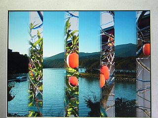 メディアを入れれば、何か出るかな?と、SDカードにjpgファイルを数枚書き込んで、筐体左上の孔に挿して、電源を入れたら、ちゃんとサイクリックに画像表示が出来ました。(左写真)