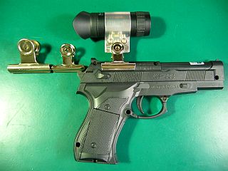 今回は、銃は右手保持で、右眼専用にして、クリップの左側に留めるようにした。(左写真)