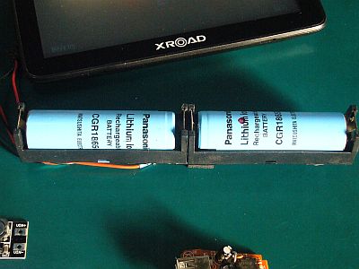 ジャンクのバッテリ・パックから取り出した標準的なLi-ionバッテリ「18650」2本を満充電してから、ナビ機を動かして、それの動作維持時間を調べてみた。