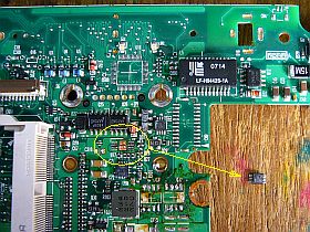 それらしいデバイスを一つずつ外しながら“ショートの有無”を調べたけれど、“これだ!”というのが確定出来ず。_左写真<クリック>_