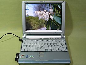 他の小型ノートに比べると、ちょっと性能は劣りますが、表示もマイルド_SVGAだし、やや暗いし_で、結構可愛いですね♪