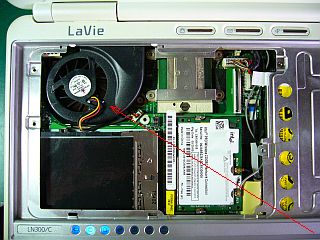 キーボードを外してファンの状態を見たら、確かに、少しユラユラはしているのだが、手で押してみても廻る気配はない。