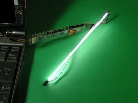 やぁ、インバータの電源側コネクタがすっぽ抜けてる!こりゃ、点かないのは当り前!多分、HDDを抜き取った後、再度カバーをする際にコード類を強く引き過ぎたのでしょう。