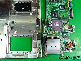 それと、裏側にあるLANカードやModemカードは、先に外しておかないと、主基板取り外しの邪魔になります。