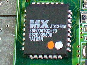 で、一番気になっていたBIOSチップが、_当初良く分からなかったのですが、_多分、左写真のフラッシュメモリでしょう。