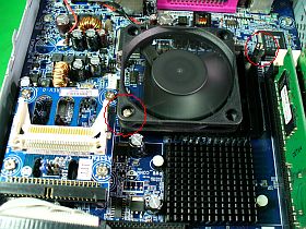この上に_ジャンクの_ファンを乗せたら、左右の震動だけでなく上下震動も有り得ます。それにマシンを立てたら、チップとヒートシンクの乖離は、かなり酷くなりそう。_実際、立てた時の方が、異常発生までの時間が短いし、頻度も多かった_