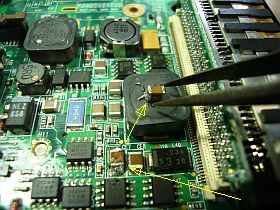熱容量の大きい箇所に付いていたり、半田鏝の先を接触させ難い箇所のチップ・コンの端子は、なかなか半田が溶けてくれない。