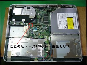始めは、“ヒューズ断線”だろうと予想していたのですが、分解途中で見掛けた「5Aヒューズ」は切れていない!_左写真_