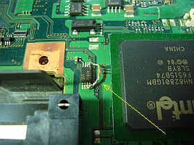 始めはDVDDの不動原因が分からず、端子の半田付け不良を疑って、高温ブロワで半田を熔かしてみたりしました。_左写真<クリック>_ ・・・ 全然、変化無し!