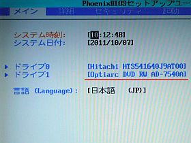 _ビスが余らないように、_慎重に再組み立てをしてから、電源を投入しBIOS設定に入ったら、見事に、ドライブ1にDVDD名が現れました!_左写真_