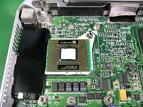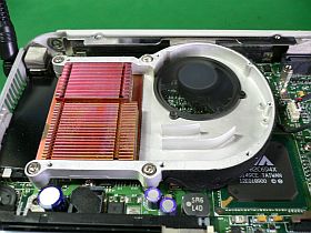 冷却ファンがちゃんと廻らないので、CPUクロック1GHzで、ライブカメラの映像_例:谷瀬の吊橋_などを見ていると、CPUが100℃近くになり、早晩これが昇天しそうな雰囲気。_左写真<クリック>_