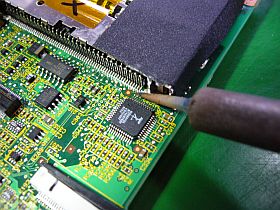チップを剥がすのは、比較的楽なのですが、問題は半田鏝の入る隙間が充分でない側面があるので、一寸心配!