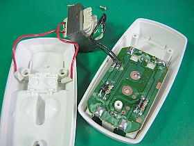 中身は、恐ろしくシンプル!整流後の平滑コンデンサすらありません。(ま、充電池の方は、脈流で充電されても、別に気を悪くはしないでしょうけど)